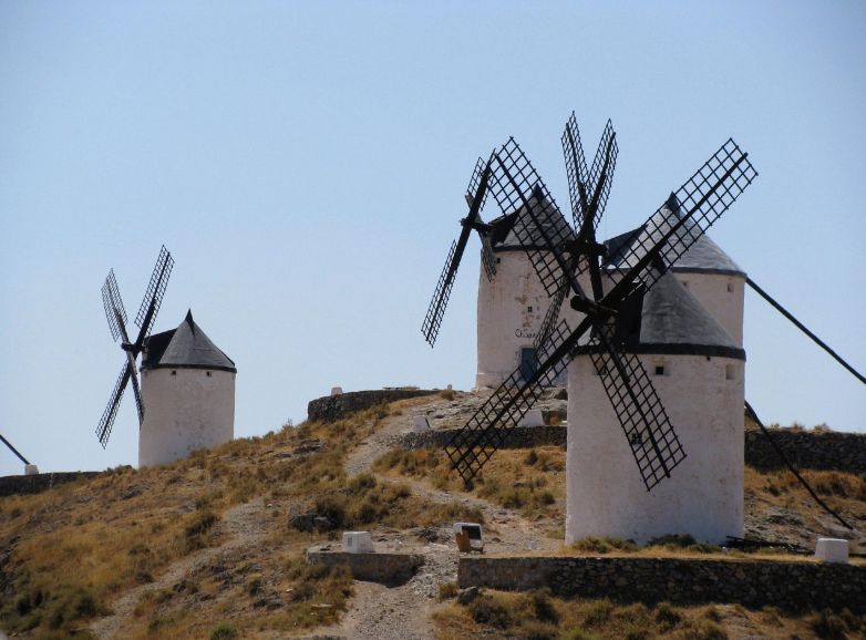 1. 캄포 데 크립타나 (Campo de Criptana): 풍차의 상징 라만차를 대표하는 풍경은 단연 캄포 데 크립타나의 풍차들입니다. 하얀 벽과 푸른색 또는 붉은색 지붕을 가진 10여 개의 풍차들이 언덕 위에 나란히 서 있는 모습은 돈키호테 삽화에서 튀어나온 듯한 착각을 불러일으킵니다. 이곳에 서면 돈키호테가 거인과 싸우기 위해 칼을 뽑아 들었을 법한 상상이 저절로 떠오르죠. 실제로 풍차 중 일부는 내부를 관람하거나, 기념품 가게로 운영되기도 합니다. 특히 해 질 녘 노을과 어우러진 풍차의 실루엣은 잊지 못할 장관을 연출합니다.